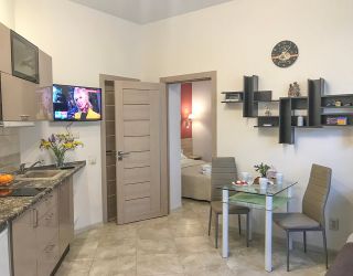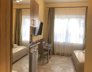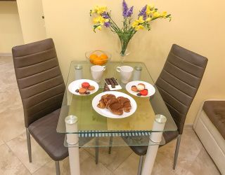 Апартаменты расположились в 7-этажном доме с лифтом. В комнатах установлена необходимая мебель для сна и хранения личных вещей. Также предусмотрены стиральная машина, фен, утюг и гладильная доска. Санузел с душем. Гостям предоставляются полотенца и туалетные принадлежности. На кухне есть плита, холодильник, вытяжной шкаф, большая мойка, электрический чайник и микроволновая печь. Парковка находится рядом с домом. Пляж Светлогорска песчаный, здесь есть все необходимое для комфортного отдыха: шезлонги, зонтики, душевые кабинки.