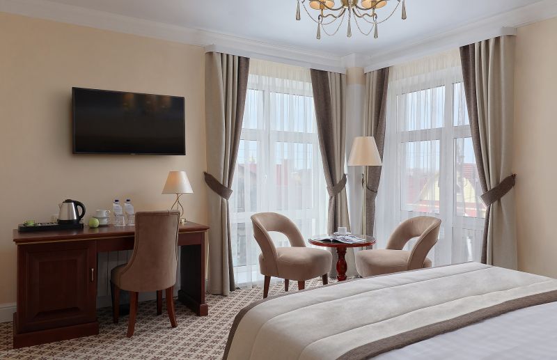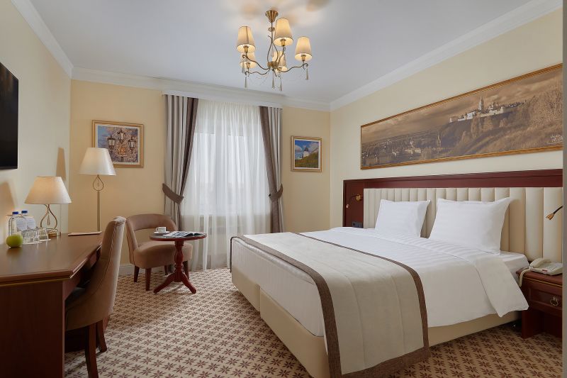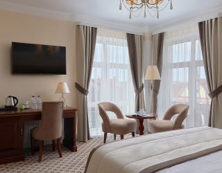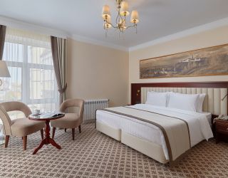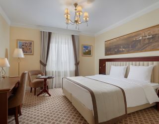 Отель располагает 45 современными номерами различных категорий, которые соответствуют всем требованиям четырёхзвёздочного отеля. В каждом номере установлена необходимая корпусная и мягкая мебель, ТВ, телефон, холодильник, кондиционер, ванная комната с душем, туалетно-косметическими принадлежностями и феном. В номерах повышенной комфортности – махровые халаты, индивидуальный сейф.