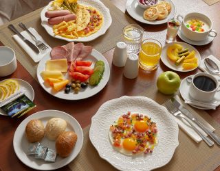 В распоряжении отдыхающих ресторан «Алябьев», названный в честь великого тобольского композитора – Александра Алябьева. Гостям предлагается отведать блюда европейской и русской кухни, здесь же сервируется завтрак «шведский стол». В меню представлена также широкая винная карта, предусмотрено специализированное меню для детей и широкий выбор десертов. На первом этаж круглосуточно работает лобби-бар, где можно отведать свежесваренный кофе, ароматный чай, прохладительные напитки, выпечку, разнообразные снэки и закуски.