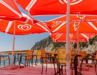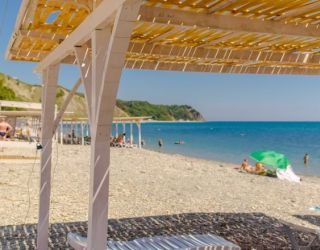 Дорога к морю состоит из баз отдыха, мини-отельчиков. Море близко, галька, людей было много, но к хорошему пляжу влево надо идти минут 10-15. Бухта красивая, море чистое.