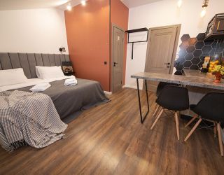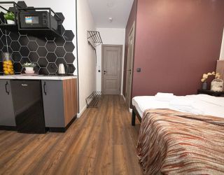 Отель разместился в четырехэтажном здании, расположенном на главной магистрали района — проспекте Победы. В распоряжении гостей сильные современные номера с собственным санузлом с душем, в номерах-студиях оборудована индивидуальная мини-кухня, оснащенная посудой и техникой. Среди услуг — круглосуточная стойка регистрации, парковка и интернет, позволяющий гостям всегда оставаться на связи.