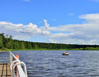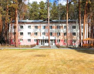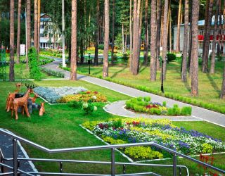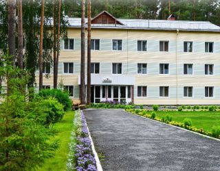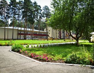 Территория площадью 14 га является лесопарковой. Своих гостей она встречает продуманным ландшафтным оформлением. Извилистые дорожки, цветочные клумбы, скульптуры животных, многочисленные скамейки и беседки органично вписались между крепкими стволами сосен. Территория вмещает в себя 5 обновленных 3-этажных жилых корпуса, 2 лечебных корпуса, столовую и административное здание. Корпуса 1,2,3,5 являются отдельно стоящими. Корпус 4 соединен теплым переходом с лечебными корпусами и оснащен лифтом, как и корпус 5 – более новый корпус современной постройки. Балконы имеются только в корпусе 5. Из окон открывается вид на центральную площадь санатория, лес и озеро. Комплектация номеров в корпусах идентична. В каждом есть ванная комната, санузел, вся необходимая мебель, холодильник, телевизор. В люксах – микроволновая печь и чайник. Интерьер выдержан в спокойном классическом стиле. Доступа к сети Wi-Fi нет, рекомендован мобильный интернет.