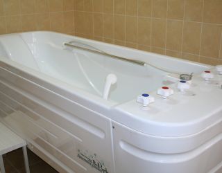 Основной лечебный фактор – высокоминерализованная вода из скважины глубиной 1270 м, подходящая по химическому составу для наружного применения. Современная лечебная база насчитывает 110 видов услуг, в том числе такие высокотехнологичные как барокамера. Набирает популярность процедура пассивного подводного вытяжения позвоночника. Для этого отведено 2 закрытых бассейна с минеральной водой: малый для индивидуальных сеансов, и большой – для групповых.