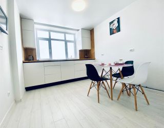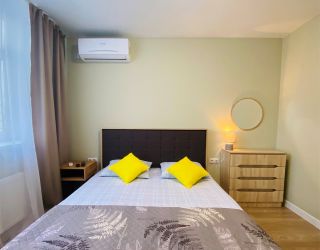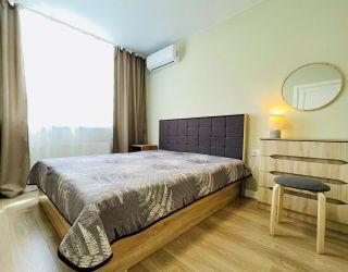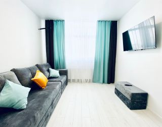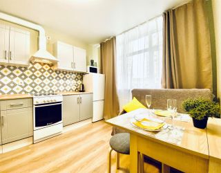 В апартаментах установлена вся необходимая техника и мебель. Предусмотрено постельное белье, полотенца и туалетные средства в ванной комнате. На кухне – посуда, электрическая плита с духовкой, холодильник, обеденная зона.