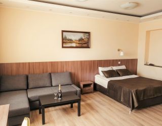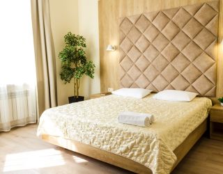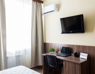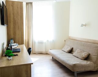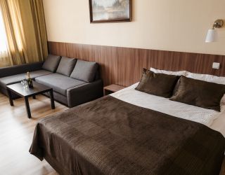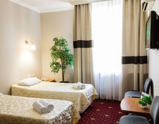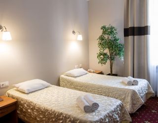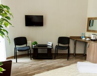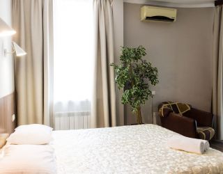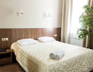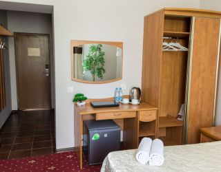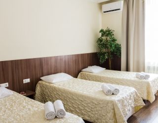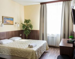 Номерной фонд расположился в 4-этажном здании. Все комнаты оснащены удобной спальной мебелью. Есть телевизор, кондиционер, сейф, холодильник, электрический чайник. Работает высокоскоростной интернет. Санузел индивидуальный, оснащен современной сантехникой, полотенцами, тапочками, халатами, туалетными принадлежностями и феном.