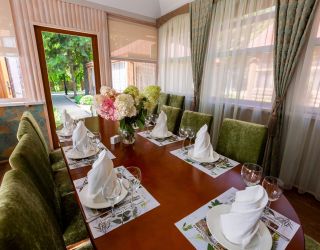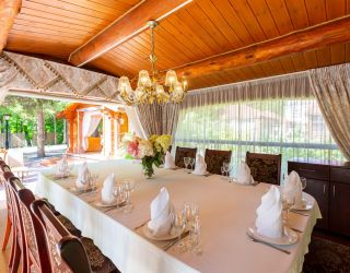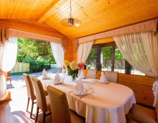 В распоряжении гостей настоящая русская баня на территории комплекса, парковка, уникальная кухня. В меню ресторана — сочетание европейской, дачной и кавказской кухни, коллекция мясных деликатесов в исполнении шеф-повара и домашние десерты от нашего кондитера. По выходным в ресторане всегда играет живая музыка. Для юных гостей предусмотрено детское меню. На свежем воздухе для них оборудована игровая площадка.