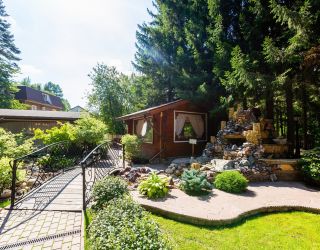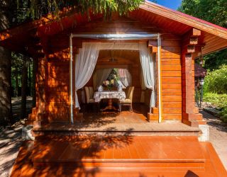 На территории комплекса гостей ждет чистый воздух соснового бора, зеленые лужайки и обширная лесопарковая зона. Комплекс состоит из уютного эко-отеля на 12 номеров, 8 гостевых домов с банями и большого ресторанного комплекса с банкетными залами и летней террасой. В номерах эко-отеля - изысканный интерьер, ТВ, холодильник, чайник, кондиционер, санузел с душевой кабиной, фен.