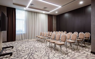Зал расположен на 1 этаже конгресс-холла, оснащен современным LED экраном 3*6 м. В вашем доступе также бесплатный высокоскоростной Wi-Fi. Есть возможность взять в аренду дополнительное оборудование: ноутбук, кликер или флипчарт. Главная особенность этого этажа – вход с летней террасы, что предполагает возможность организации любого мероприятия с использованием дополнительной летней площадки. По запросу предоставляется танцпол, сцена.