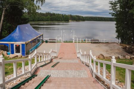 Поездом до ж/д вокзала г. Витебск, далее на арендованном транспорте или такси.