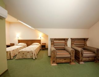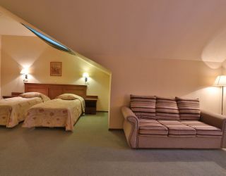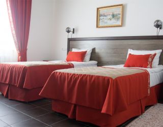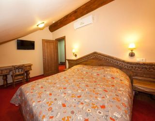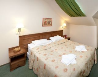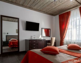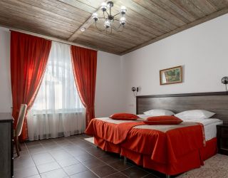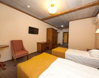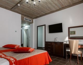 Гостиничный комплекс разместился на небольшой, но благоустроенной территории площадью 28000 кв.м. и включает в себя 4 коттеджа и двухэтажный основной корпус. Постояльцам предлагаются номера разного уровня комфорта от Стандарта до Люкса, оборудованные качественным мебельным гарнитуром, современной бытовой техникой – в номерах есть кондиционеры, жк-телевизоры, холодильники и санузлом с душем или ванной.