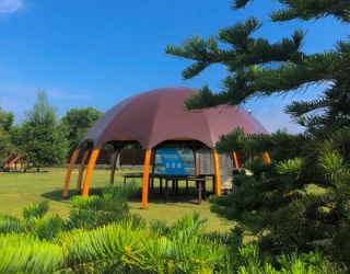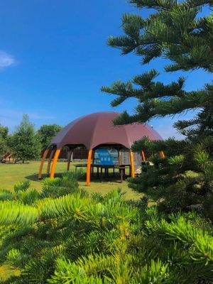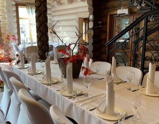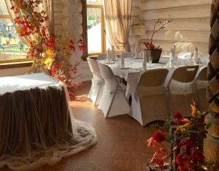 В гостинице две точки питания для гостей – ресторан и кафе. Оба оформлены в стиле рустик, ресторан - с элементами лофта. Есть место для сцены, бар, небольшая лаунж зона в ресторане и ВИП-зона в кафе и две небольшие кабинки для уединенного пребывания. На территории действует несколько беседок, удобных для посиделок компаниями. В летнее время открыт шатер, идеально подходящий для проведения банкетов или деловых мероприятий.