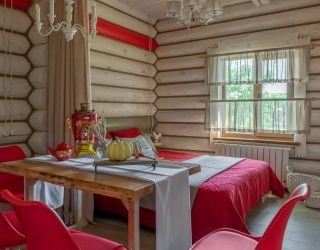 На территории базы разместился 2-этажный гостиничный корпус с тремя категориями номеров и семь домов из круглого архангельского бруса. Каждый номер оснащен всем необходимым для комфортного проживания – спальные места, ТВ, холодильник, индивидуальный санузел с душевой кабиной, фен. В домах дополнительно оборудованы кухни с посудой и бытовой техникой.