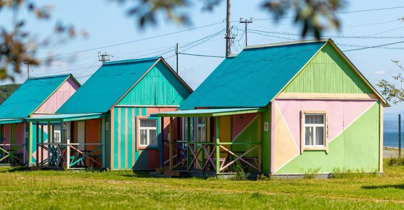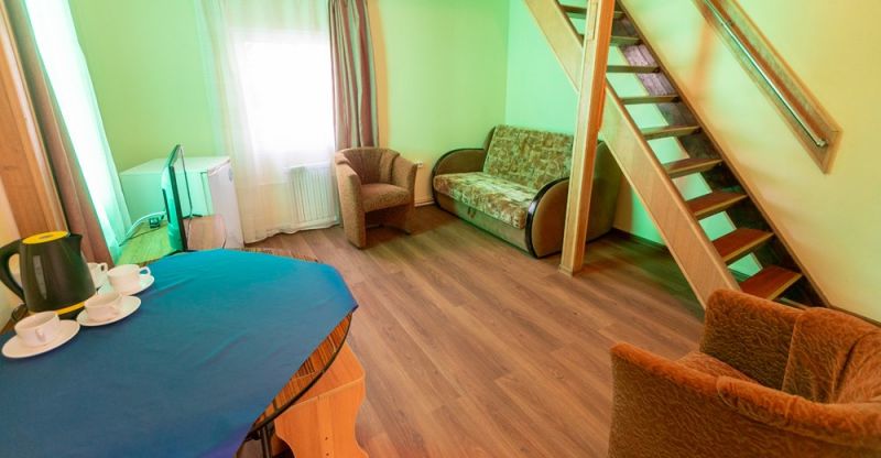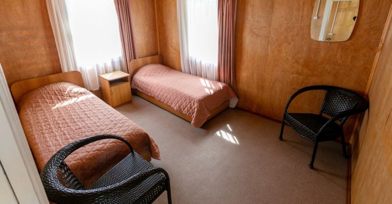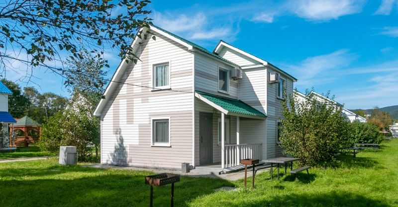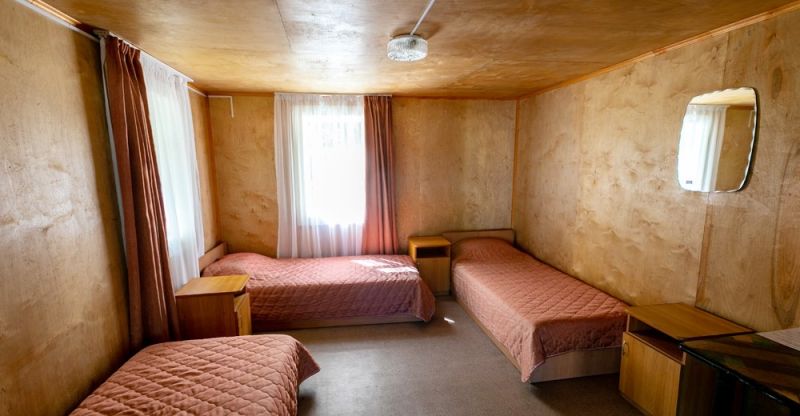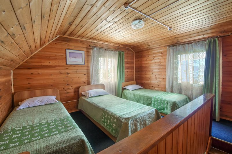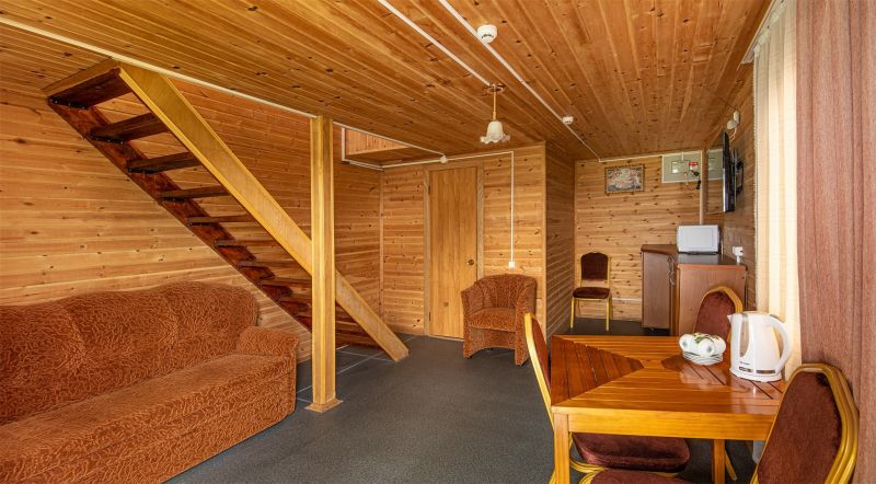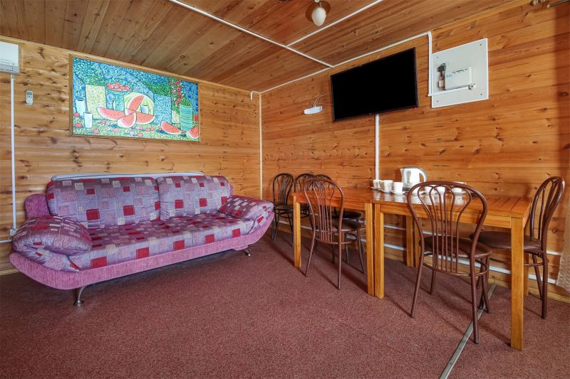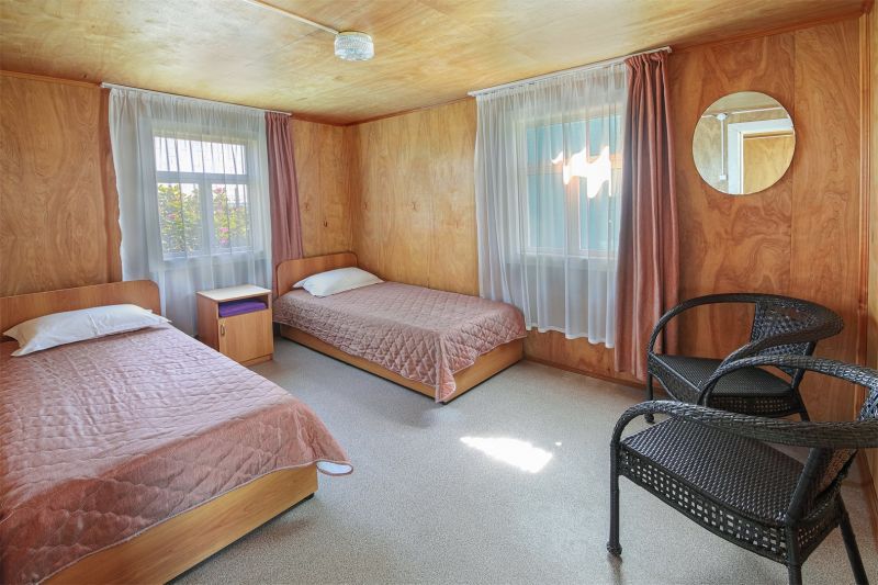 Для проживания предусмотрены благоустроенные многоместные коттеджи и летние 2-4 местные домики с удобствами на территории. Номера в домиках укомплектованы спальными местами, тумбами для хранения вещей, верандой. Коттеджи оборудованы обеденными зонами, двухспальными или односпальными кроватями, есть ТВ, холодильники, микроволновые печи и чайники. Рядом с коттеджами - мангал, стол и лавочки.