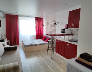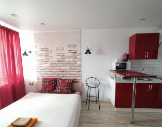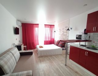 Студия разместилась в 10-ти этажном здании, расположенном на главной магистрали района — Ленинском проспекте. Гостей ожидают двухместные номера со светлы интерьером. Студия оснащена мини-кухней с необходимой техникой и посудой, а также санузлом с душем. Для удобства гостей в комнате есть плазменный телевизор, кондиционер, доступен беспроводной интернет.