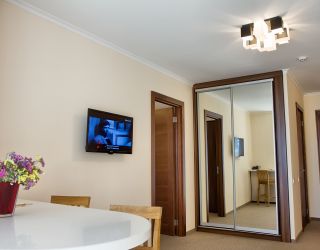Каждый из гостиничных номеров отеля «Актер» в Ялте укомплектован необходимой бытовой техникой: телефоном, телевизором и холодильником. Номера «люкс», «комфорт» и «стандарт» снабжены кондиционерами, Wi-Fi доступен на территории отеля.