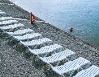 Галечный пляж располагается в 50 метрах от корпусов. На нем выделены солярий и теневая часть, есть медицинский пункт, тренажеры, лодочная станция. Из развлечений отдыхающим предлагаются катание на катере, занятия серфингом и дайвингом.