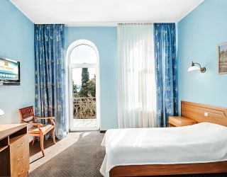 Пятиэтажное здание отеля «Бристоль» (Ялта) в стиле архитектуры XIX века (с лифтом) может одновременно вместить более 215 человек.