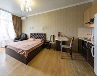 Апартаменты расположились на 3 и 4 этажах 7-этажного отеля с лифтом. В комнатах выполнен современный ремонт, есть абсолютно все для комфортной жизни – удобная мебель, телевизор, кондиционер, Wi-Fi, стиральная машинка, гладильные принадлежности. Санузел с душем, полотенцами, туалетными принадлежностями и феном. Для самостоятельного приготовления еды предусмотрена кухонная зона, оборудованная холодильником, электрической плитой, микроволновой печью и набором посуды.
