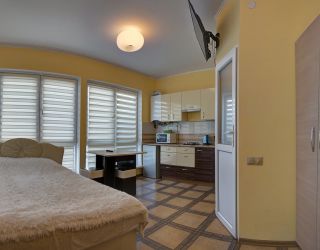 На 1 этаже 3-этажной гостиницы располагаются стандартные номера. На 2 этаже есть вместительные апартаменты с кухней, полностью обустроенные для комфортного отдыха. В каждом номере организованы удобное спальное место, зона для хранения одежды, есть телевизор, кондиционер, собственная ванная комната с туалетно-косметическими принадлежностями и феном. В апартаментах дополнительно предусматривается стиральная машина. Для самостоятельного приготовления еды на 1 этаже оборудована общая кухня. Здесь есть необходимая техника и набор посуды. Любителям блюд на открытом огне рекомендуется воспользоваться мангальной зоной.
