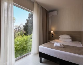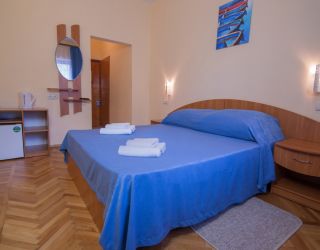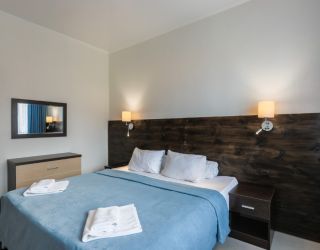 Четырехэтажный жилой корпус (без лифта) находится на территории небольшого живописного парка с фонтанами. Гостям отель предлагает номера категории Стандарт и Люкс. В каждом номере есть собственная ванная комната с душем и косметическими принадлежностями, телевизор, кондиционер, электрочайник, холодильник, предусмотрены меблированные балконы в номерах категории «Люкс», «Стандарт», «Улучшенный».
