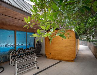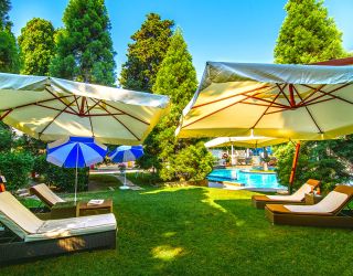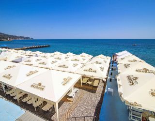 На оборудованном галечном пляже есть всё, что нужно для комфортного и безопасного отдыха: зонты, шезлонги, раздевалки, душевые и спасательный пост. Пляж работает с мая до конца сентября.