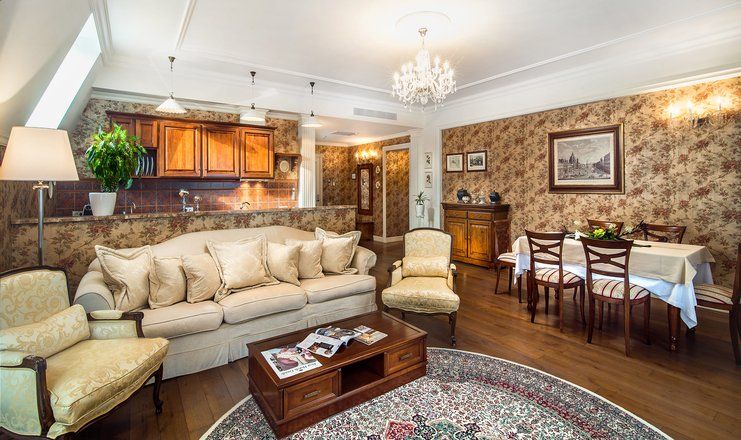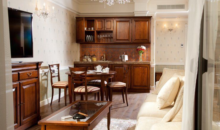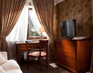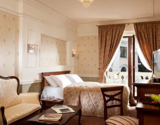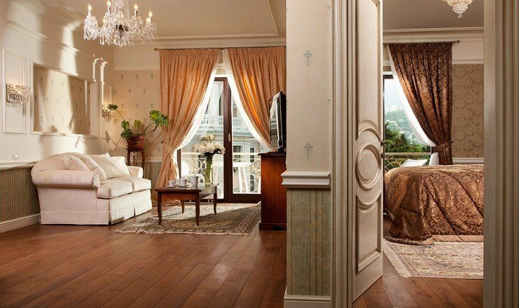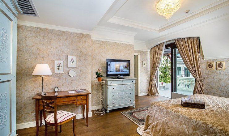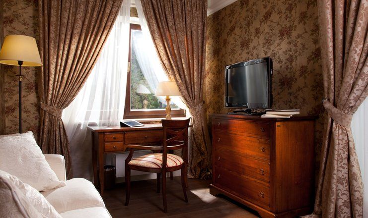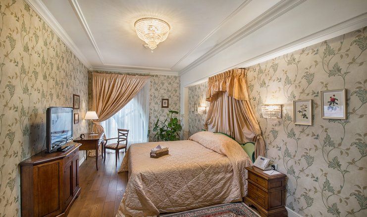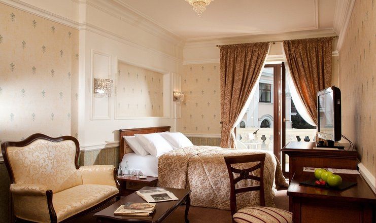 Номера отеля, от дизайна до мелочей, – воплощение изящества и прекрасного вкуса. Холлы, лестницы и коридоры тоже впечатляют великолепием. В здании сохранился старинный лифт, который до сих пор служит гостям.