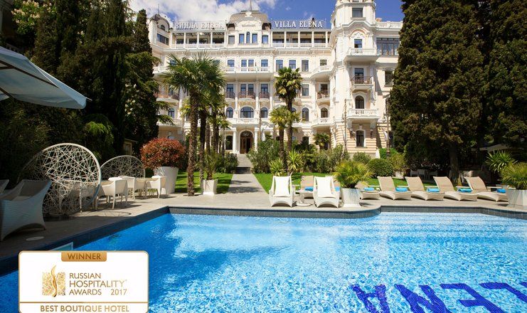 История гостиницы насчитывает больше 100 лет. Она была построена в 1912 году и долгое время считалась лучшей. Высокую марку «Вилла Елена» держит и сейчас. Старинное здание бережно отреставрировано по фотографиям и чертежам – творение архитектора Л. Шаповалова осталось таким же прекрасным, как в былые дни.