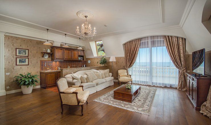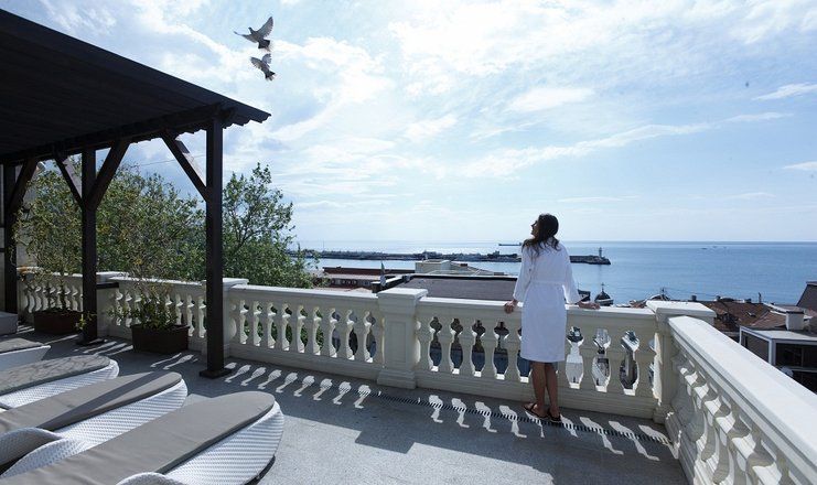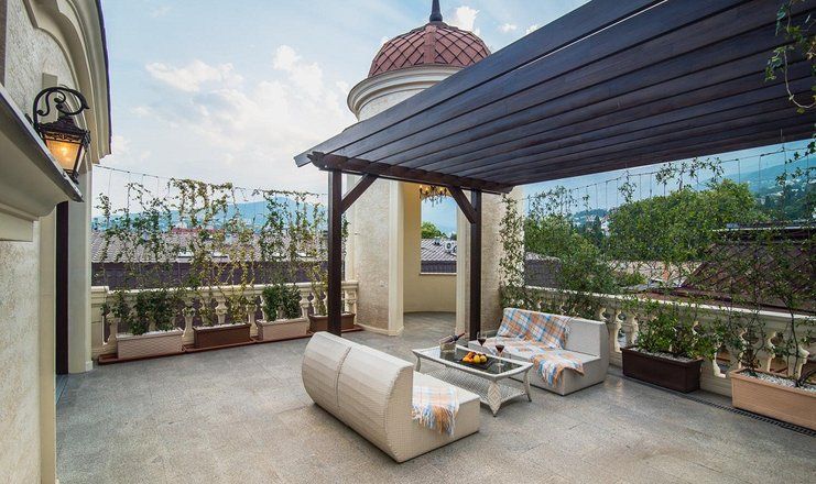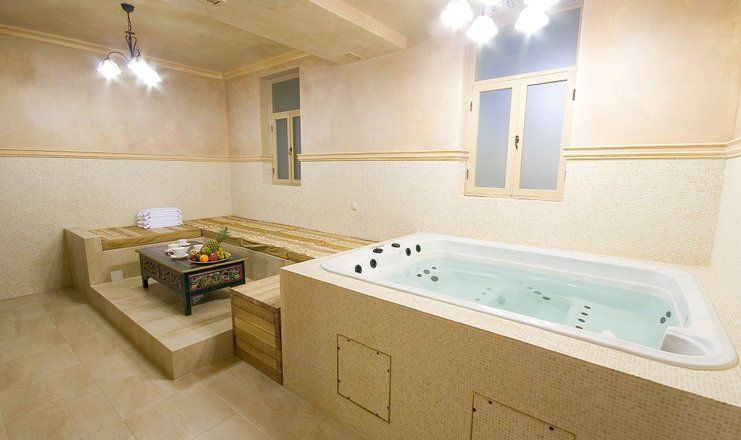 В распоряжении гостей – сезонный бассейн на свежем воздухе, римская баня, кабинеты массажа и косметологии, спелеокамера.