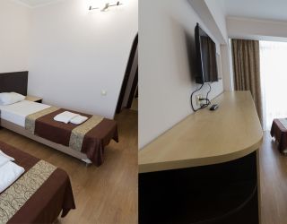 Начитавшись плохих отзывов ехала и опасалась. Ехали на машине с ребенком четыре года. Приехали поздно, разместили моментально. Вошла в номер и приятно удивилась. Номер шикарный, очень чисто, вид из окна впечатляет. Весь персонал очень вежливый и отзывчивый. Питание разнообразное, шведский стол, есть все. Перечислить не возможно, вообщем действительно все. Территория очень красивая, есть детские площадки, площадка для волейбола, два бассейна, один с горкой. Есть массаж, ингаляции, грязи и т.д. Нам проводили бесплатно экскурсии. У отеля свои автобусы и авто. На пляж можно спуститься на фуникулёре или по лестнице. Для меня это был идеальный отдых. Мы отдыхали 18 дней. Спасибо всему персоналу отеля!
