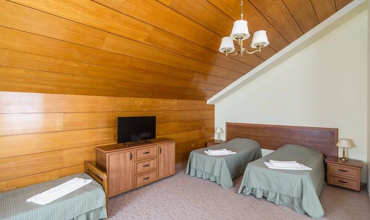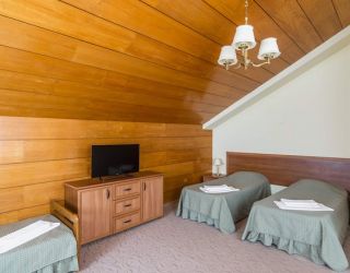 Стандарты представлены 2- и 4-местными номерами. Апартаменты для 2 гостей могут располагаться в корпусах №1, 2, 3 или 4. Они оснащены балконом с плетеной мебелью. Мансардные номера второго, третьего и пятого корпуса способны комфортно разместить 4 людей. Они занимают большую площадь.