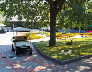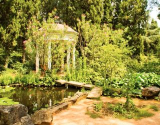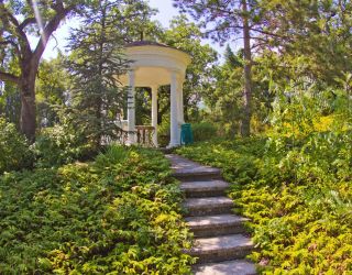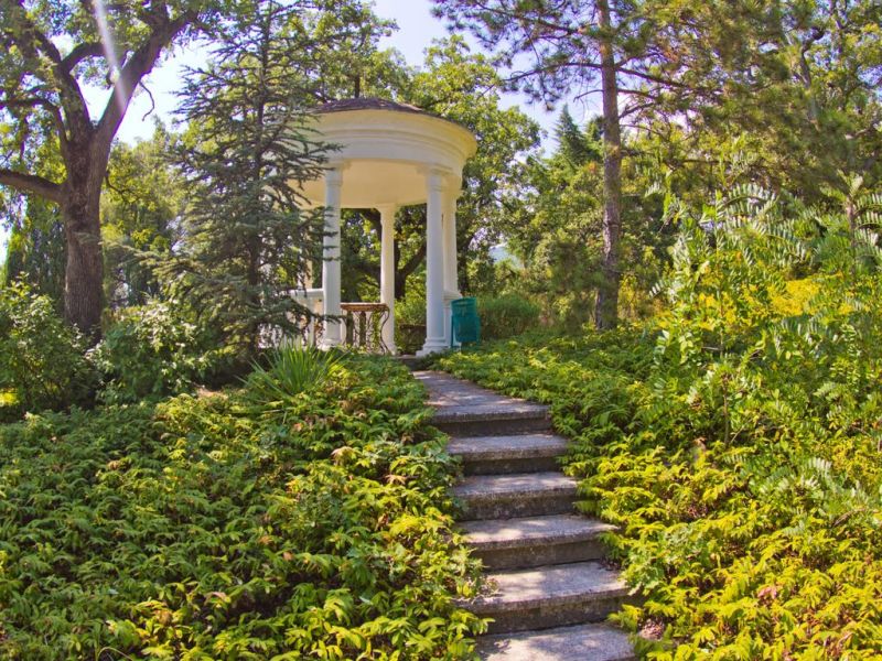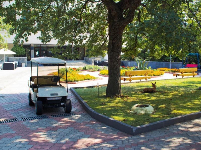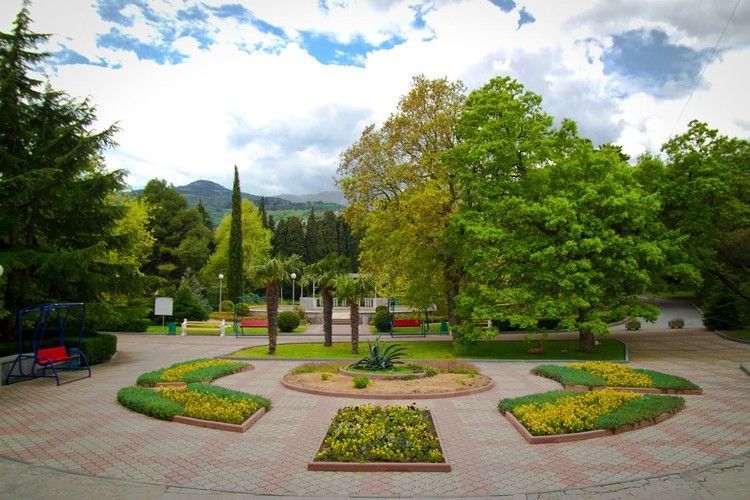 На территории санатория тоже есть шикарный парк с разнообразными растениями и деревьями. А так же с красивым ландшафтом и живописными беседками.