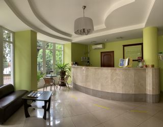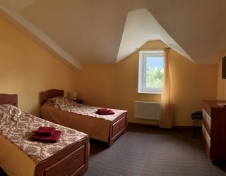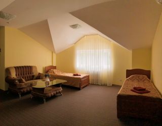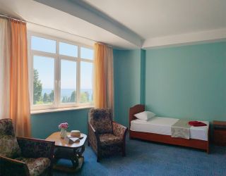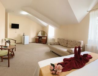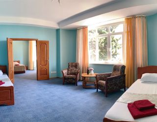 Номерной фонд расположился в 4-этажном здании. В комнатах установлена удобная мебель для отдыха, есть места для хранения одежды, телевизор, кондиционер, мини-холодильник, электрический чайник. Санузел индивидуальный, с ванной или душевой кабиной, полотенцами, туалетно-косметическими принадлежностями и феном. В некоторых номерах есть балкон. На территории отеля работают столовая и бар.