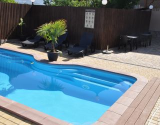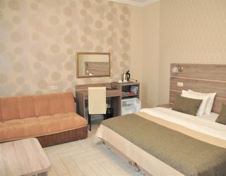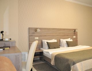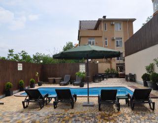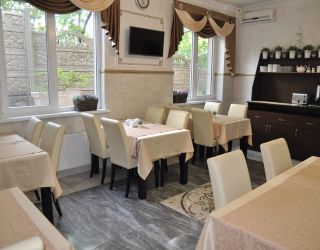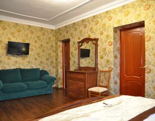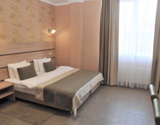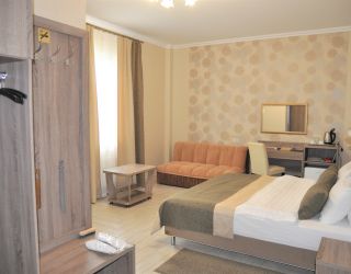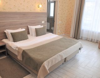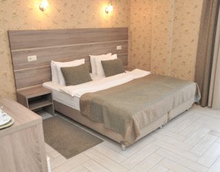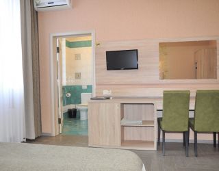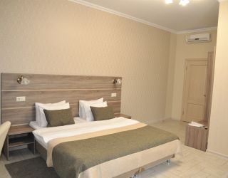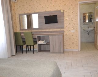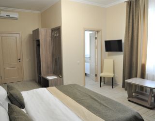 В четырехэтажном здании отеля – всего 14 двухместных номеров, но уровень сервиса не оставит гостей равнодушными. В заботе об отдыхающих номера укомплектованы эргономичной мебелью, на кроватях – латексные ортопедические матрасы, на окнах – блокирующие свет шторы «блэкаут». В номерах есть кондиционер и холодильник, телевизор и сейф, а ванные комнаты с душем и круглосуточно подаваемой горячей водой оборудованы феном. В холодный период включается отопление. На всех площадках доступен интернет (wi-fi). К услугам гостей – сауна и дубовая купель, электрочайник и пляжное полотенце, прачечная самообслуживания и бесплатный прокат утюга, охраняемая автостоянка и банкомат.