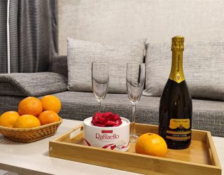Новые, уютные, светлые апартаменты в 10-ти минутах ходьбы до моря. В апартаментах высокие потолки 2,7м, панорамные окна. Балкон не застеклен в апартаментах и лоджия с выходом из кухни. Дом кирпичный. Удобное месторасположение дома: рядом хороший выбор магазинов, супермаркетов, кондитерских. в 200 метрах от дома находиться остановка рейсовых автобусов до Калининграда, На небольшом расстоянии также находятся ЖД и Автовокзал, Променад у моря, главная улица города Курортный проспект и все достопримечательности города. В апартаментах свое автономное отопление, есть возможность устанавливать комфортную температуру тепла, в ванной комнате установлена система теплый пол. Для приятного отдыха гостей в квартире есть все необходимое: постельное белье, полотенца, посуда, средства гигиены, гостевые тапочки. Мебель: Диван-кровать (размер 140х195 см), кровать с ортопедическим матрасом (размер 140х200см), прикроватные тумбы, журнальный столик, письменный стол, обеденный стол, табуреты, два вместительных шкафа , кухонный гарнитур. Бытовая техника: двухкамерный холодильник, телевизор, стиральная машинка, фен, утюг, чайник, 4-х конфорочная газовая плита, духовой шкаф с множеством функций, микроволновая печь. Кухня оборудована вытяжкой.
