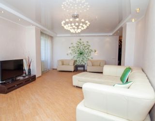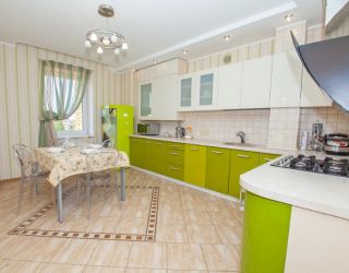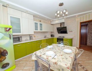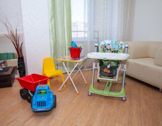 Апартаменты с панорамным видом готовы принять большую семью с детьми. Для комфорта кухня оснащена всей необходимой бытовой техникой, в том числе посудомоечной машиной, мультиваркой и блендером. Для отдыха с детьми предусмотрены: детская кровать, стульчик для комления, книги и игрушки. Просторный санузел разместил как ванну, так и душевую кабину.