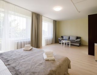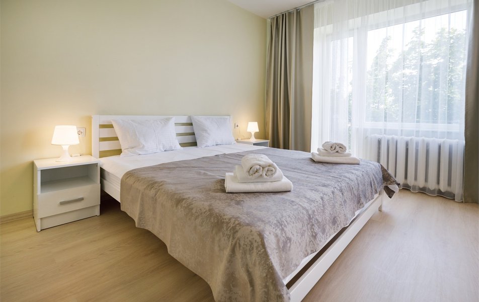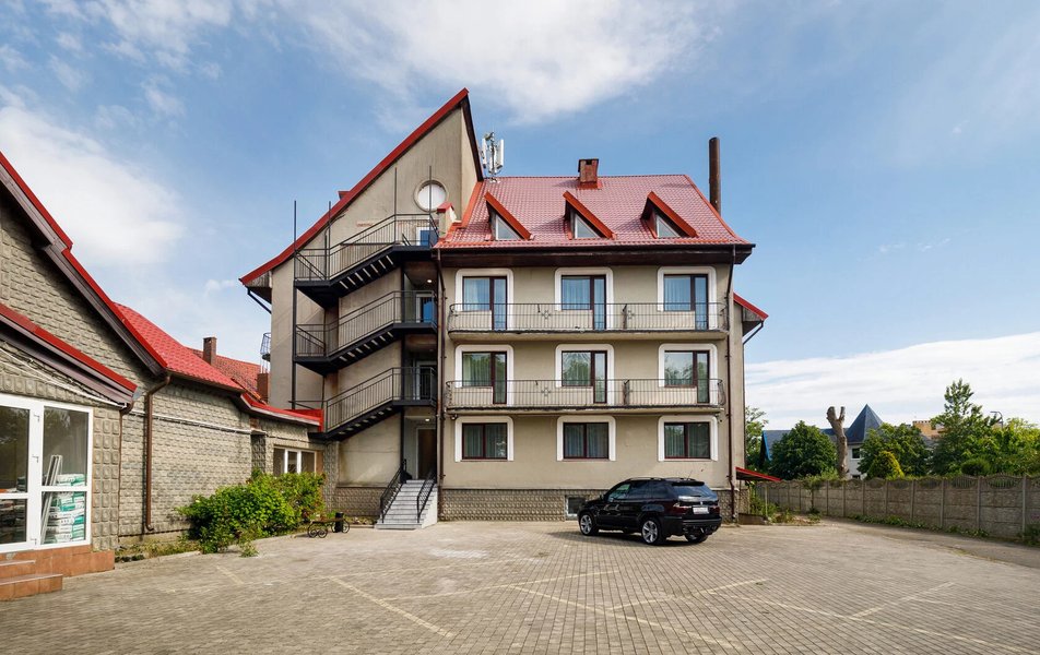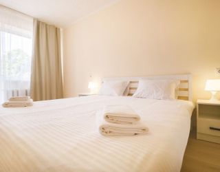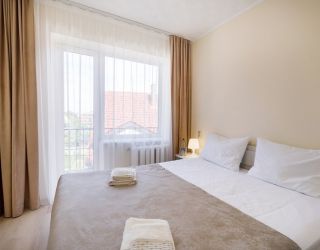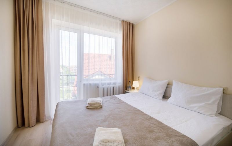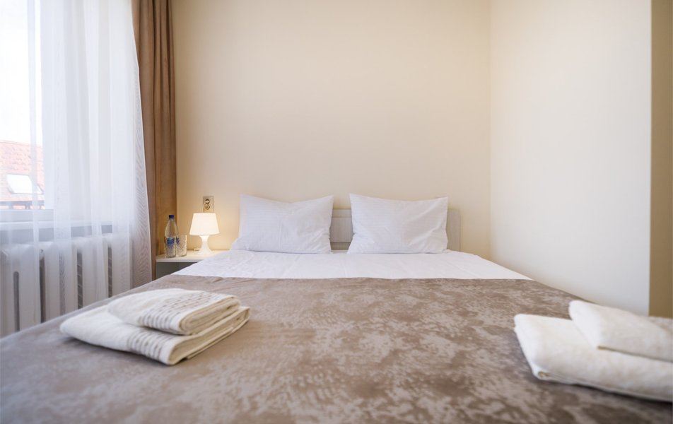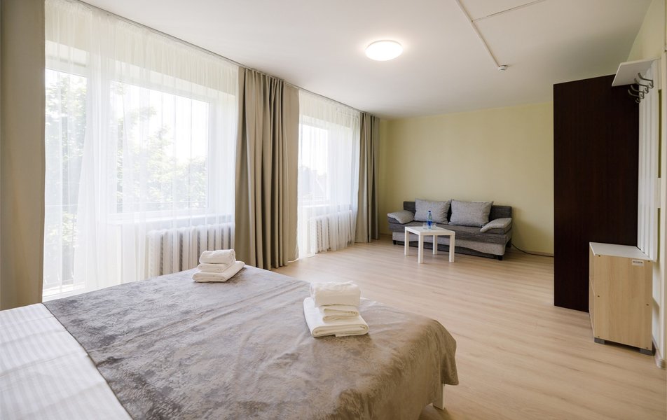 На первом этаже отеля организована удобная зона ожидания и работает кафе. Среди удобств – охраняемая закрытая парковка на заднем дворе. А всего в нескольких минутах ходьбы – Балтийское море и широкий песчаный пляж.
