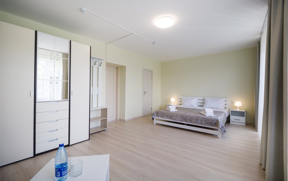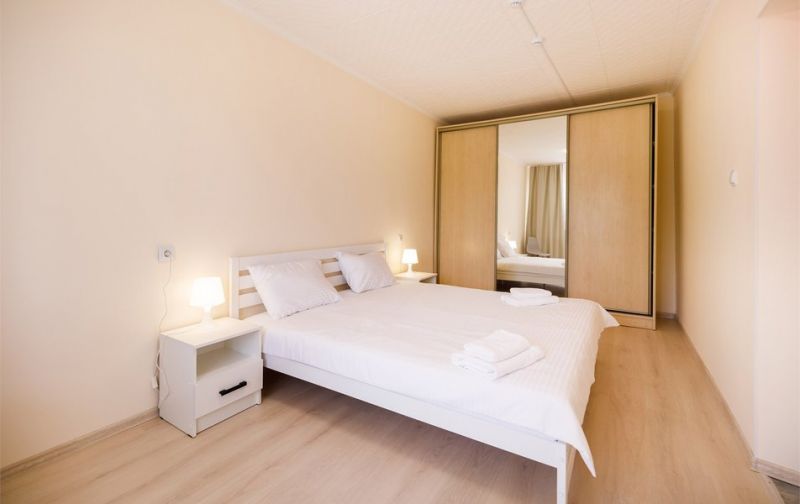 Трехэтажное здание отеля с мансардой расположено всего в 100 метрах от моря. Жилой фонд включает в себя 30 номеров разных категорий: есть как бюджетные варианты с санузлом на этаже, так и просторные двухкомнатные номера с балконами. В комнатах есть вся необходимая мебель, сеть wi-fi,
