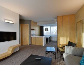 Жилой фонд включает в себя 28 комфортабельных звукоизолированных номеров разных категорий. Во всех номерах – стильный интерьер, декорированный камнем, стеклом и ковкой. В каждом номер установлен кондиционер, есть большой плазменный телевизор, цифровое телевидение, современная ванная комната, где для гостей подготовлены халаты и тапочки
