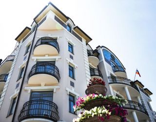Пятиэтажный корпус санатория, оснащенный лифтом, располагается на главной улице города — улице Ленина. Возле жилого корпуса на территории санатория находится бювет с минеральными источниками. Небольшой жилой фонд, рассчитанный на 60 отдыхающих, предлагает гостям номера Стандарт, Де Люкс, Студио и Люкс. В каждом номере имеется собственный санузел с ванной или душем, удобный мебельный гарнитур и необходимая техника — ЖК-телевизор, мини-холодильник, электрочайник, фен.