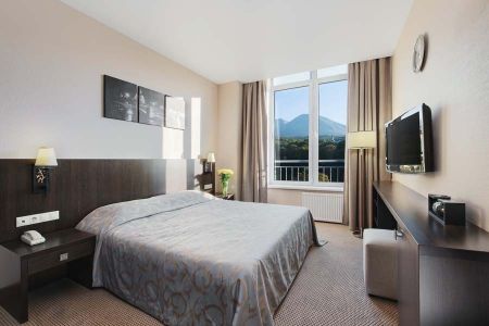 Самолетом до аэропорта г. Минеральные Воды, далее на маршрутном такси №11 до остановки «Площадь Победы», далее на маршрутном такси №223Б до остановки «ТЦ Пассаж», алее на маршрутном такси №223А до остановки «Вокзал Железноводск», далее пройти пешком 410 м до санатория.